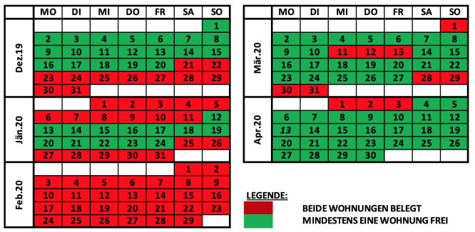 Hier finden Sie unseren aktuellen Belegungskalender für den Winter 2019 / 2020.